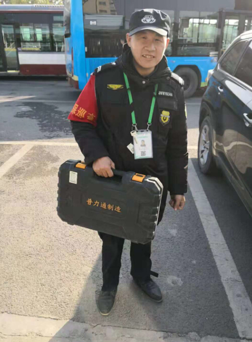 11月11日,也就是昨天北京金卫伟业保安公司乘务员王秀奇在东桥至回南收车检时在座位下发现一工具箱,里面有电钻,王秀奇按照“十八个怎么办”上交给调度室,