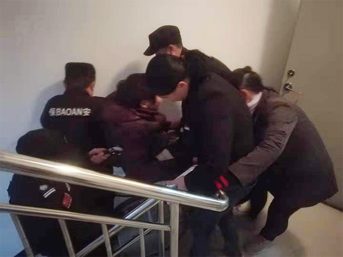神华佳苑暖心保安员将残疾人业主抬至13楼家里