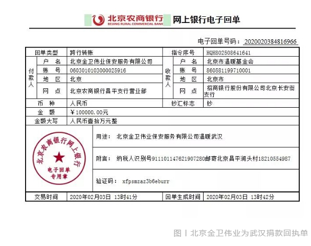 汇聚大爱,北京金卫伟业捐款10万元支持武汉抗击疫情!