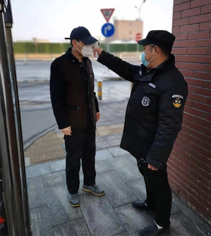 为及时应对疫情,北京金卫伟业保安服务有限公司多次召开视频会议,尹成总经理对此次疫情高度重视,要求各分管领导认真落实各项工作制度,配合甲方完成辖区内的安全检查、体温测量、消毒、登记等工作。