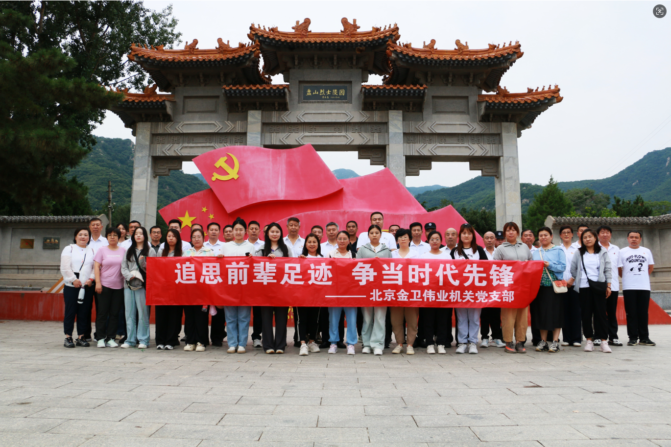 按照中共北京市昌平区委城南街道工委《关于做好庆祝中国共产党成立103周年有关工作的通知》精神,为落实公司党支部计划安排,扎实推进党纪学习教育入脑入心,6月21日,金卫伟业机关党支部组织在编党员、机关流动党员、党员发展对象、积极分子及优秀青年代表共48人,来到位于天津市蓟州区的盘山烈士陵园,举行主题党日活动。