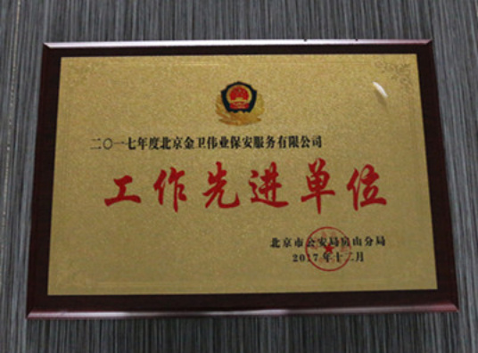 2017年刚刚过去,我们迎来了2018年。新年的第二天,北京金卫伟业保安公司就收到一份特殊的礼物------北京市公安局房山分局授予北京金卫伟业保安公司2017年度“工作先进单位”的荣誉称号。这是北京金卫伟业保安公司项目驻勤点所在地公安监管部门对我们工作的充分肯定,是对公司规范执勤,严格管理的最好回报,实至名归!