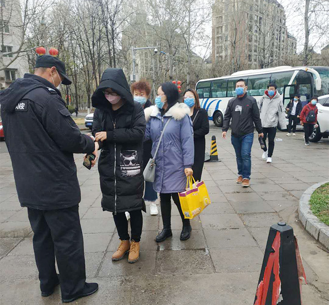 北京金卫伟业保安服务有限公司驻燕化医院项目负责人,视频会议结束后,立刻赶赴现场,监督指导防疫工作。他表示作为医院的保安,大家都知道危险就在身边,但是既然选择了逆行,我们就要勇于担当。我们带着责任和使命,带着感情和热情,主动承担、服务大众。